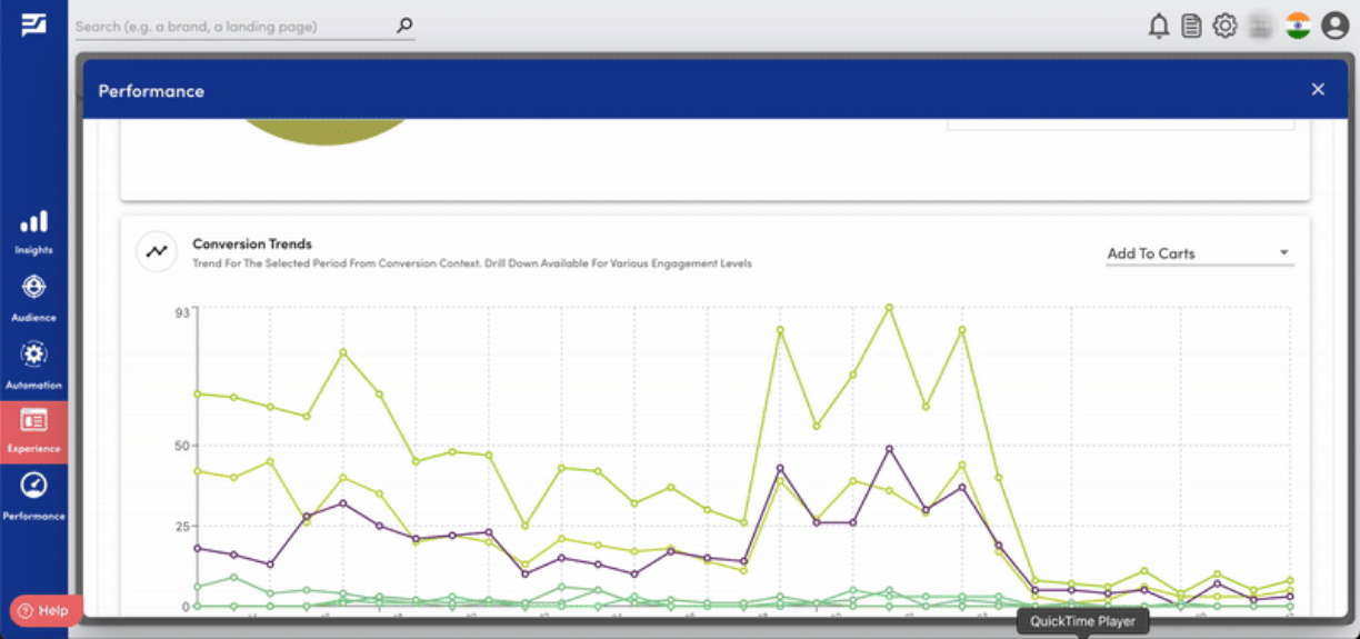 Conversion Trends: Gives you insight on engagement trends for the selected period. Drill Down Available For Various Engagement Levels.