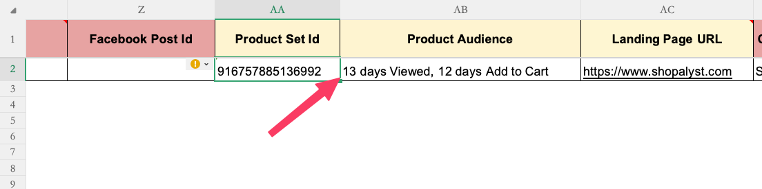 Product Based Retargeting : For catalog sales campaigns this targeting allows ads to reach people who have interacted with your products on or off Facebook. You can enable this by filling in the Product Audience column, and adding the Product Set ID in the input sheet is optional.