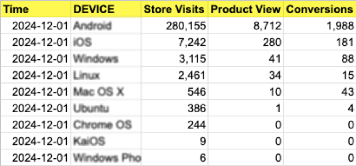 3. Total Shopper distribution across devices for a required time period the total shopper distribution across devices, such as Android, iOS,Linux, Windows etc within a specified time period to gain insights into audience preferences and behaviour.